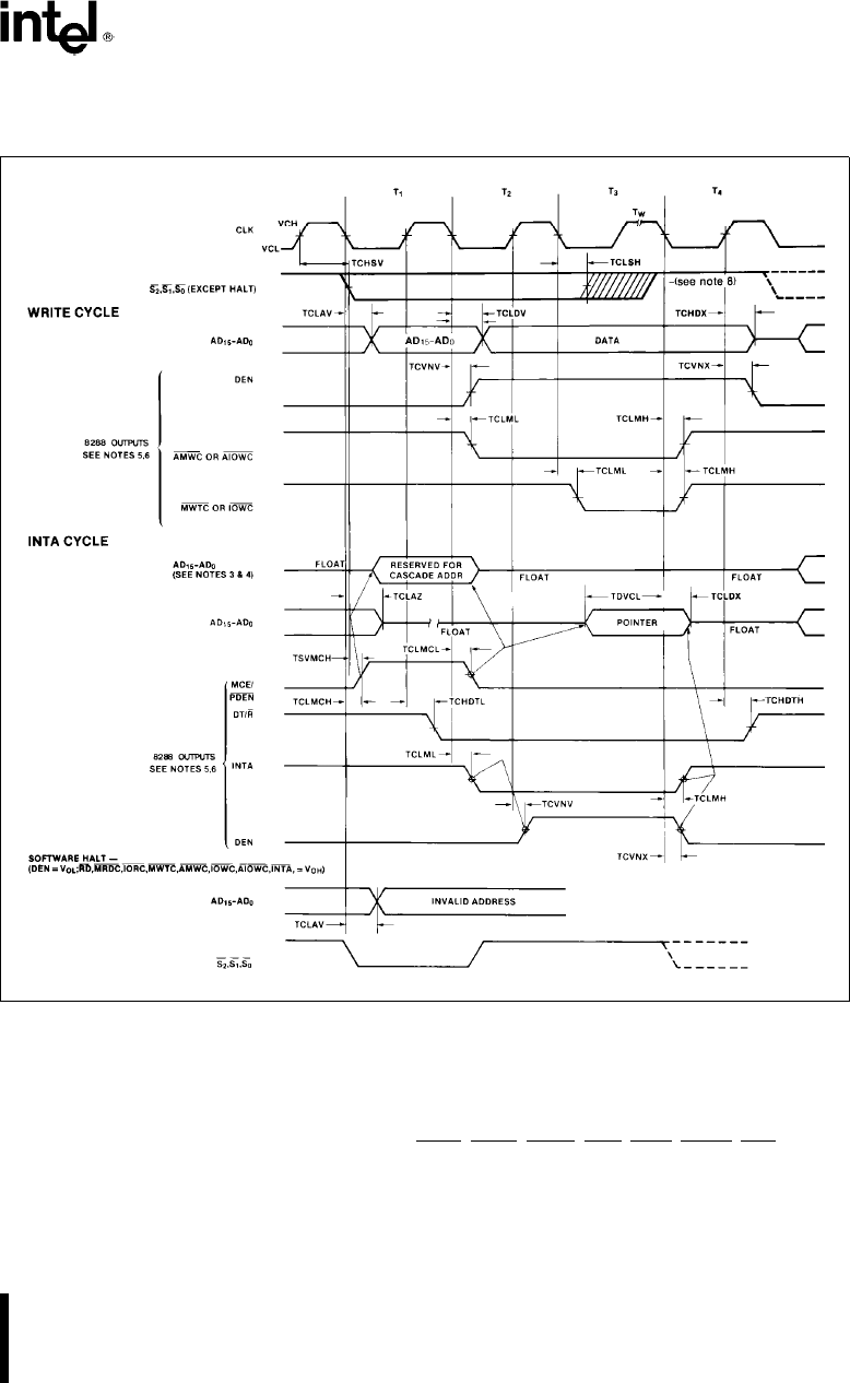 4. Two INTA cycles run back-to-back. The 8086 LOCAL ADDR/DATA BUS is floating during both INTA cycles. Control for